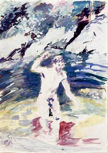 Even later zag ik een andere, Homerisch aandoende scene: een stel van mijn leeftijd vleide zich in het hoge gras boven de rotsen aan de overkant van het water. De jongen verwijderde zich en na enige tijd hoorde ik een gil: het meisje was opgesprongen en rende weg in alleen een slipje, een paar zwijnen achtervolgden haar. Toen het meisje zich met haar rug tegen een olijfboom drukte terwijl de dieren haar met hun natte snuit besnuffelden, verscheen haar vriend en joeg de beesten met een dikke tak weg, tot vermaak van Basken die verspreid langs het water zaten.